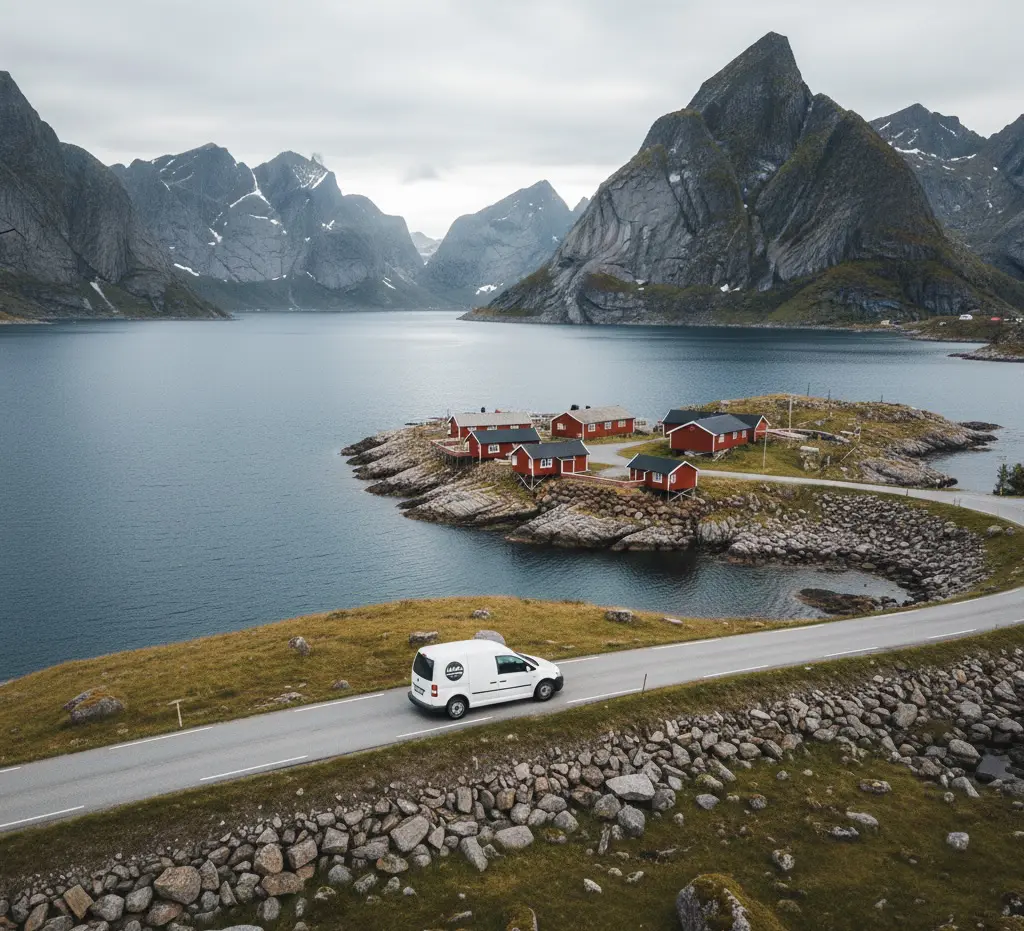 Sur le transport : Les routes des Lofoten sont étroites et sinueuses — roulez tranquillement, vous verrez plus de choses et consommerez moins. Le kilométrage est illimité avec Lofoten Nomads, pas de stress.